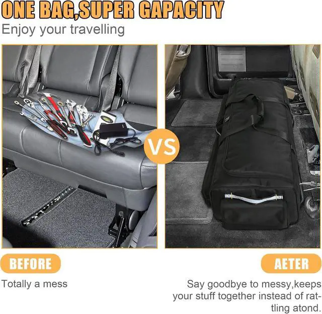 Easy to Move: The appropriate height will not affect your seat placement, make full use of the hidden space in the car, and provide you with a clean and spacious space. The front and short side handles help you easily pull out the bag without lifting seat, and the long, padded shoulder straps let you carry your belongings with you