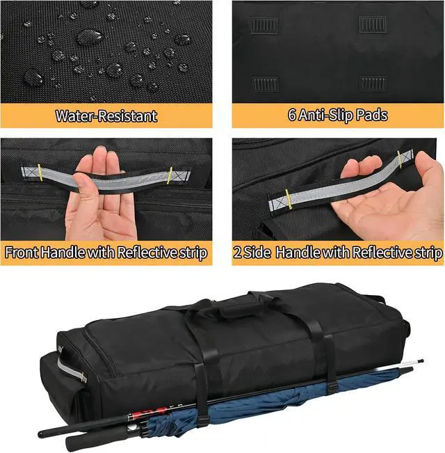 Premium Material: The storage bag under the seat is made of water-resistant thickened nylon fabric, which is strong and sturdy. It has 6 non-slip feet at the bottom to reduce friction with the ground. Reflective strip design makes it easy to find your seat bag in dark environments