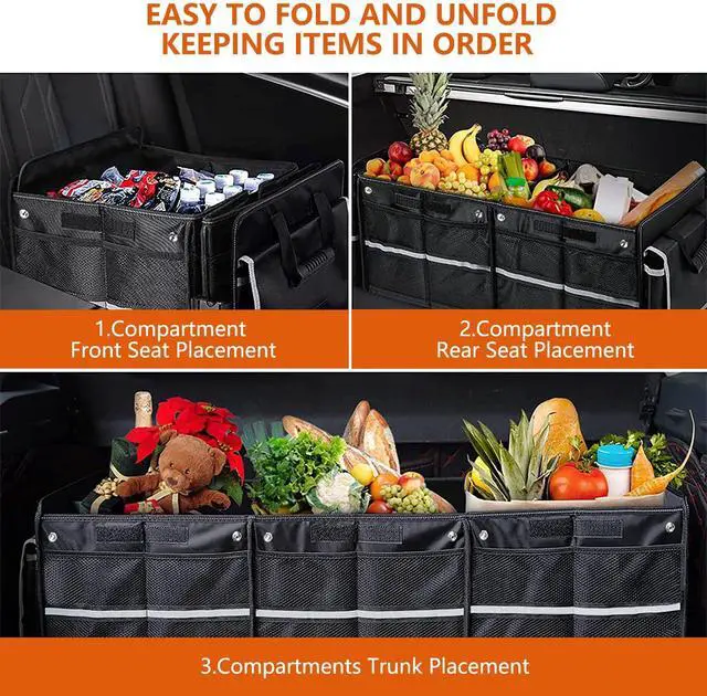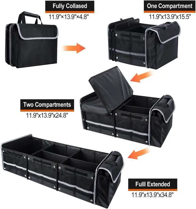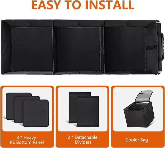 Easy to clean: This trunk storage is super simple to assemble and fold. You can take this suv trunk organizer with you for shopping, traveling or having a picnic. Wipe the surface with a wet cloth for cleaning