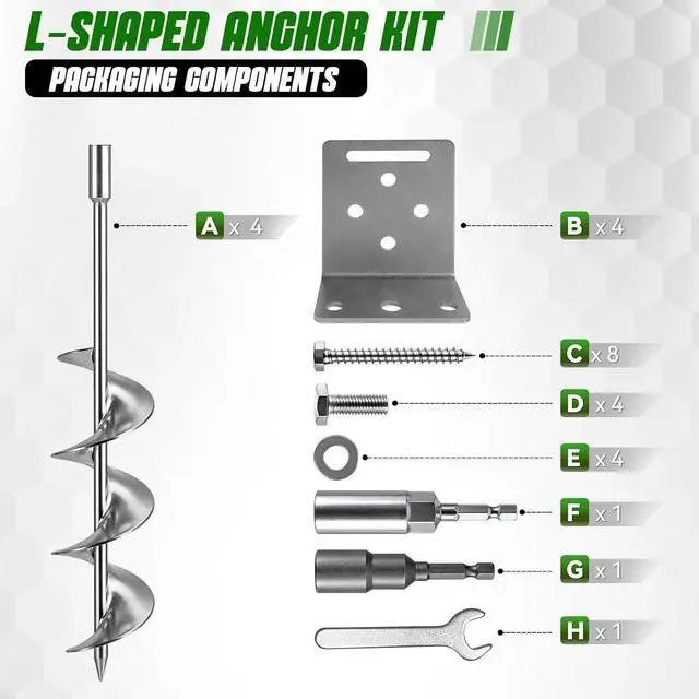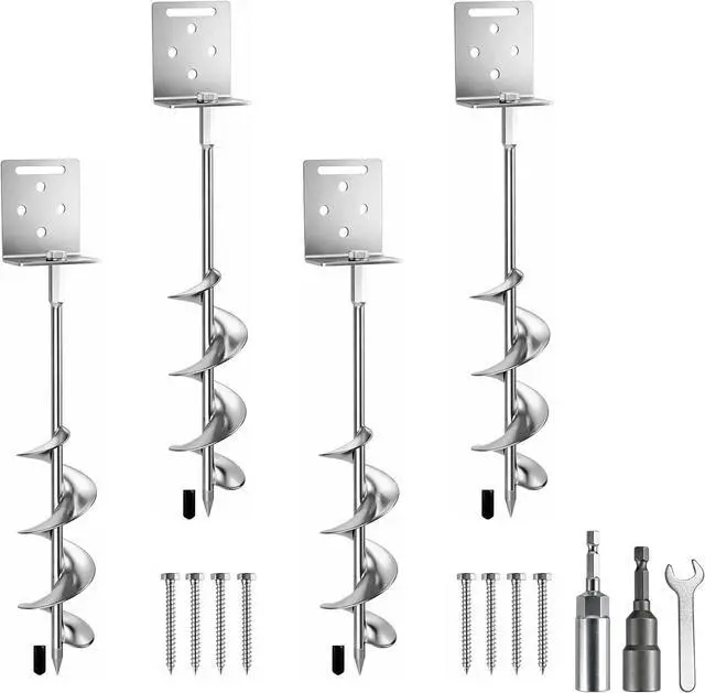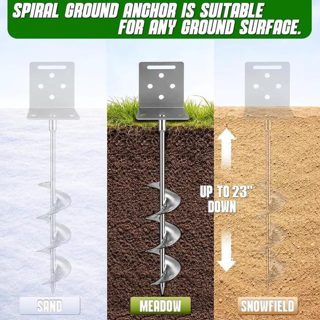 Product Description Secure your outdoor structures with confidence using our 24" 4-Pack Ground Anchors with L Bracket. This set of heavy-duty spiral anchors provides a reliable, easy-to-install solution for anchoring sheds, trampolines, swingsets, mobile homes, fences, tents, canopies, carports, and more. The full welded L bracket design ensures maximum strength and durability, while the spiral tip allows for quick, tool-free installation into the ground. Whether you're protecting against strong winds or simply need a permanent anchoring solution, these ground anchors deliver the holding power you need.