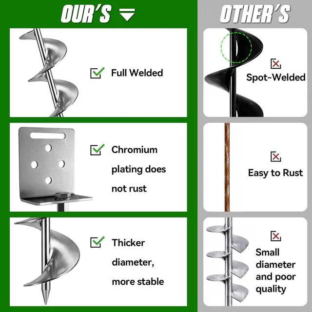 Corrosion-Resistant Construction: Made from heavy-duty galvanized steel, these anchors resist rust and corrosion for long-lasting outdoor performance. Built to withstand exposure to moisture, soil conditions, and weather elements.