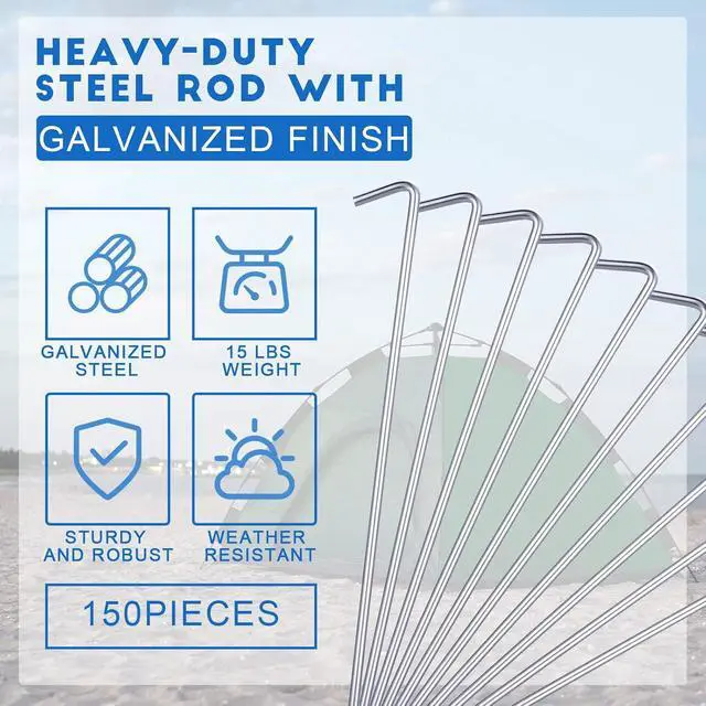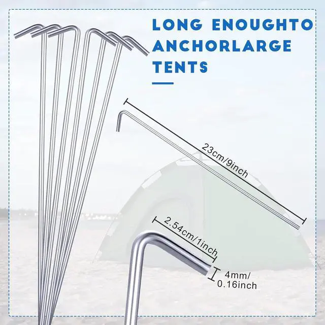 The lawn stakes can keep tent secure in mud, sand, grass, soil or other conditions, can be easily inserted into the ground with a hammer. The hook design also allows you to find the canopy stakes and pull them out easily.