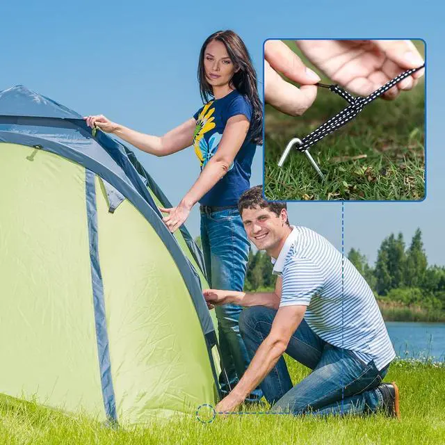Practical Tools: the tent pegs provide excellent penetration and support, can be applied to firmly anchor your tent in a variety of soil conditions and bad weather conditions to prevent the tent from blowing away while camping, just nail it into the soil with a hammer