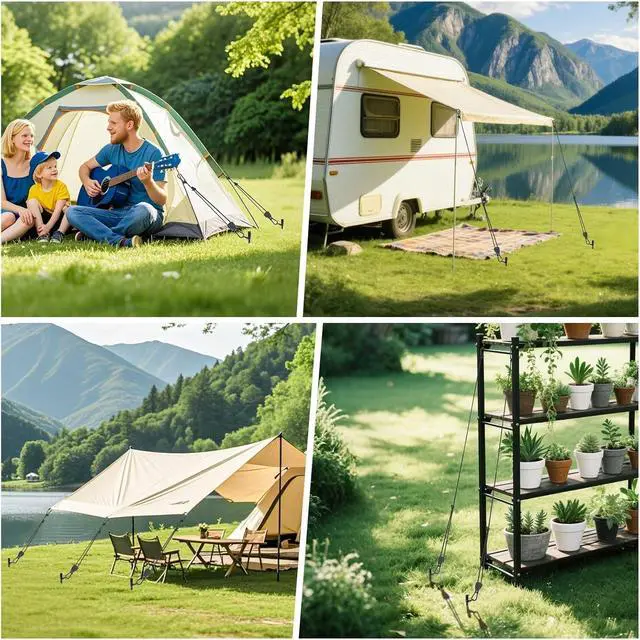 Complete Kit + Easy Carry: Includes 4 anchors + 4 ratchet ropes + M12 wrench + storage bag for fast setup at campsites, backyards, and the beach