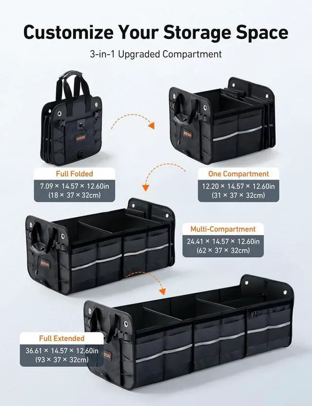 Human-Centered Design: Nylon handles provide soft&comfortable carrying experience when were carrying heavy items. Four securing straps and anti-slip pads provide double security, avoid sliding. A foldable cover ensures the organizer is clean and sturdy and protects your privacy at the same time.
