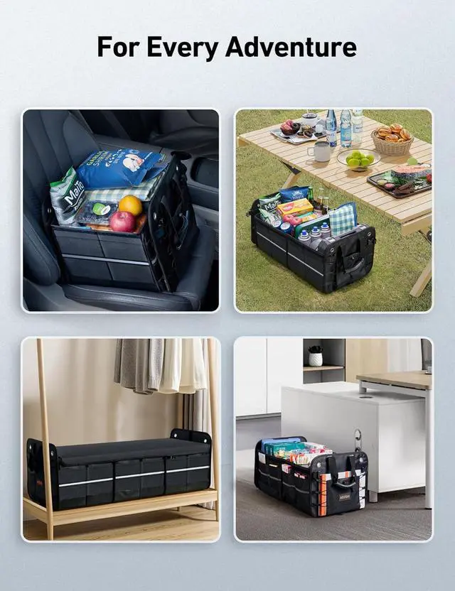The car organizer can keep the car clean and ordered. Save more space for vehicle tools and accessories. Compatible for car, trunk, SUV, VAN. Widely used in travel, emergency devices storage, vehicle storage, family storage, and office storage. Gifts for men and women.