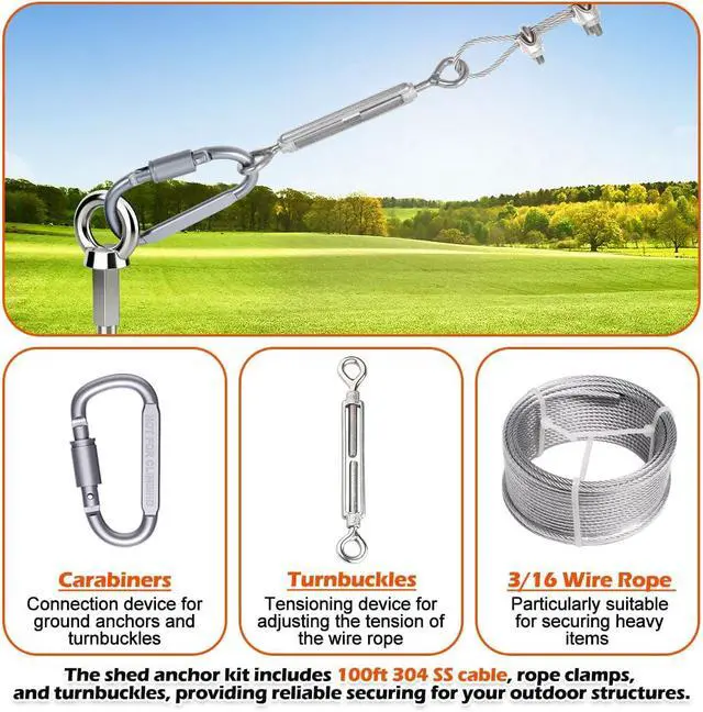 High Quality: Our mobile home anchor are made with 12mm diameter solid steel; The sharp tip can be easily inserted into various surfaces, including soil, sand, lawn, and more. Detachable eyelets make the shed anchor kit more portable