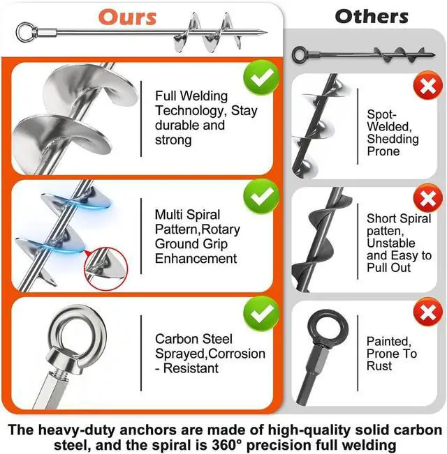 Wide Application: Ground anchors provide robust support for various outdoor projects and facilities. such as carports, greenhouses, trees, it can also be used to secure holiday sculpture for halloween, thanksgiving, christmas