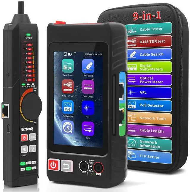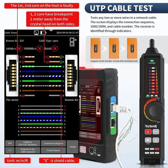 UTP & Tr& RJ45 TDR & LengthAdvanced UTP cable test can easily test UTP cable's sequence, type and remote kit. Ethernet cable trcan quickly find out the target cable from the mess cables. RJ45 TDR test can easily test pair status, length, attenuation, reflectivity, impedance, skew, and other parameters, max 180 meters (590 feet). Cable length meter Measure opens of network cables, max measurement length up to 3000 meters.