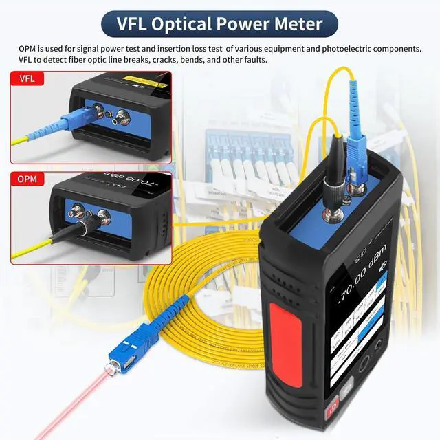 DMM / OPMDigital Multimeter--Measurement tool for AC and DC voltage, AC and DC current, resistance, capacitance, data hold, relative measurement, continuity testing. Optical power meter--It is used for signal power test and insertion loss test of various equipment and photoelectric components.