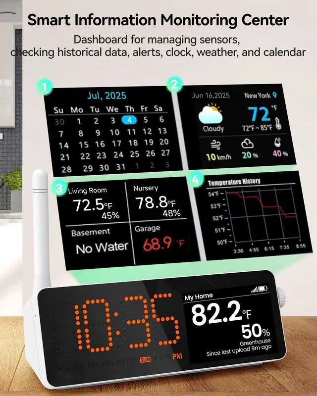 Clear Display: The H5Pro WiFi Hub shows time, weather, and calendar, plus your sensors current temperature and humidity. You can also check trend graphs to see how conditions change over time, perfect for fine-tuning your wine storage or plant care