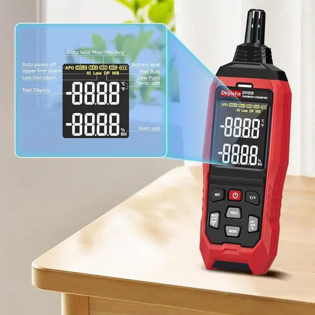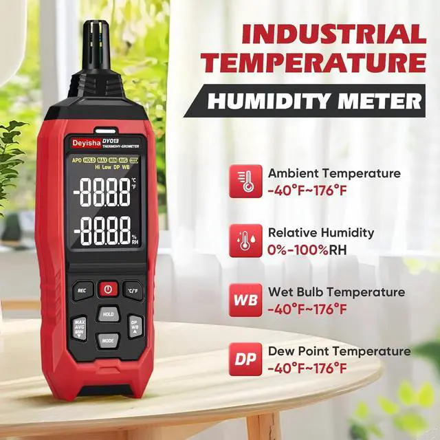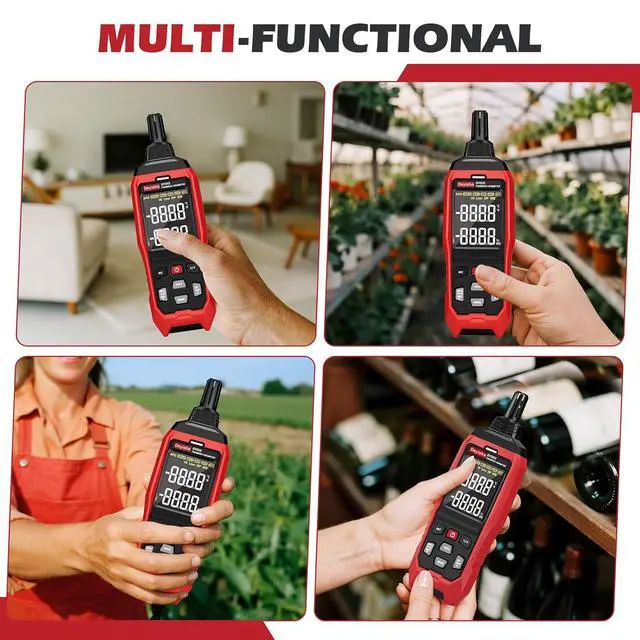 WIDE APPLICATIONS hygrometer can be applied in industry and agriculture, household, laboratory, HVAC, meteorology, medical, daily life, engineering, paranormal investigator, wine cellar, machine room, data storeroom, etc.