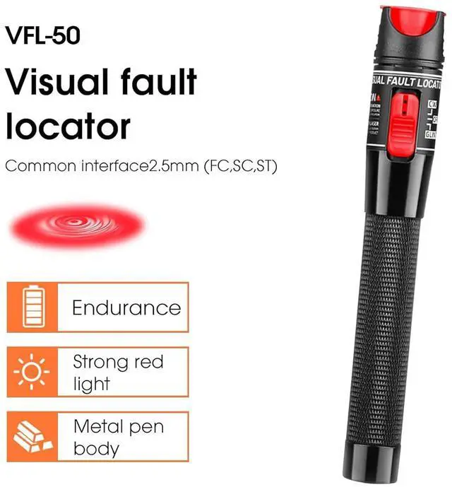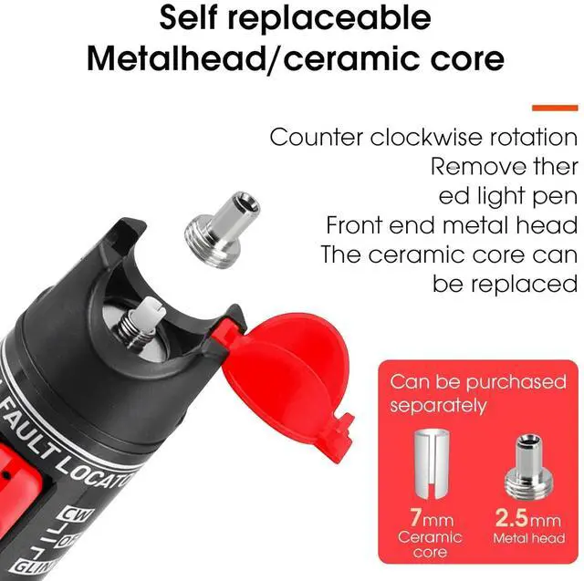 UsageThe locator 's 2.5 mm universal connector is designed to be compatible with ST, SC, and FC interfaces, making it suitable for testing both single-mode and multi-mode cables. [The LC cable can be tested through the FC Male to Female LC connector]