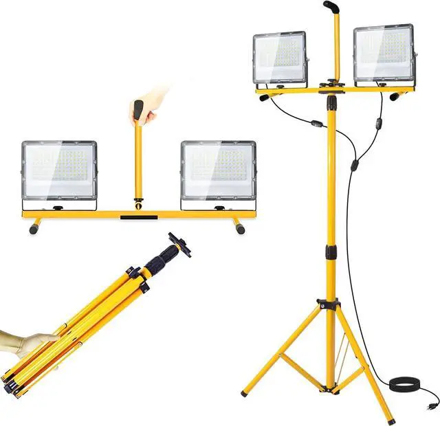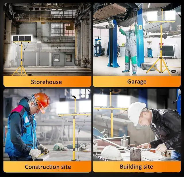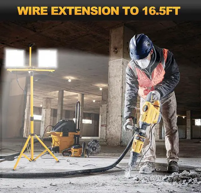 Stability & Widely Used: The tripod light uses specific clips to link the bracket to the light body, making it sturdy, stable, and not shaking. 16 ft power cord is less distance constraint, a wider space for use, not only suitable for construction site lighting but also suitable for outdoor camping And emergency lighting.