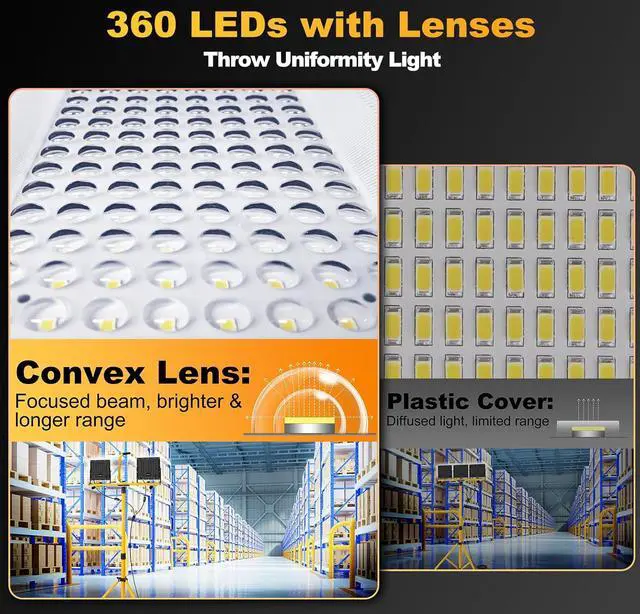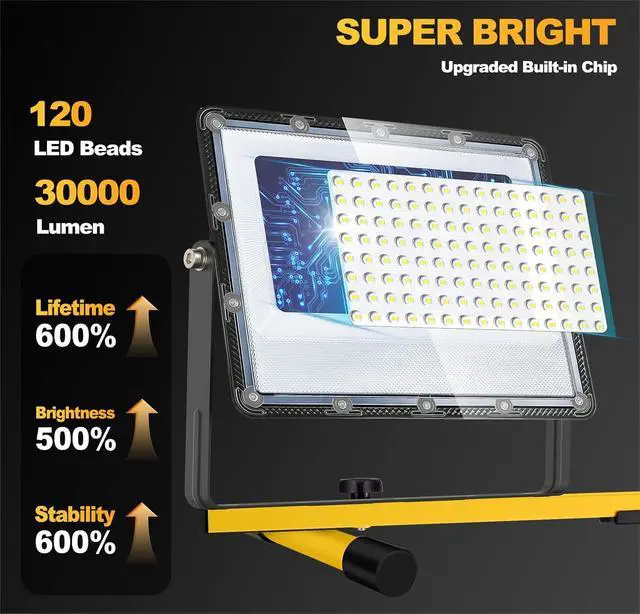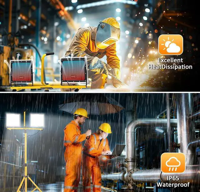 Durability & Long Lifespan: The construction work lights adopt Die-cast Aluminum housing helps to stay cool after the long-term operation, and ensures the safety of the working environment. ABS lenses make it great weather resistant and good to prevent dust, and water from entering and accumulating ensuring work efficiency and service life.