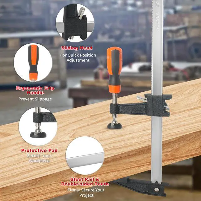 Professional DesignWood clamps design with quick-release latches that can improve your woodworking efficiency. Soft Jaw PadsBar clamps have soft jaw pads that can protect your project surface.