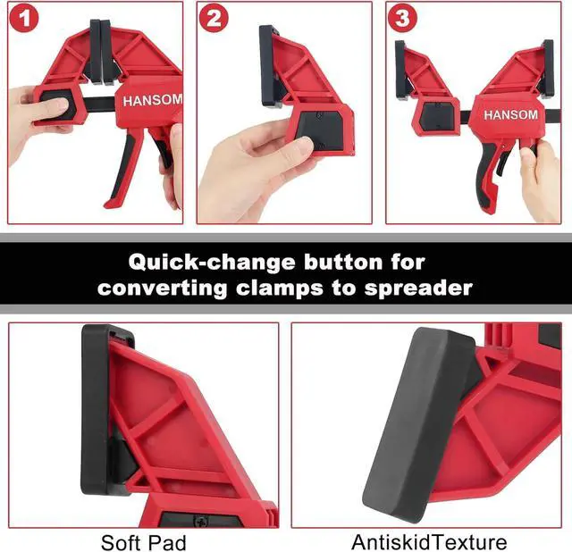Ergonomic HandleThe handle of the woodworking clamp is ergonomic, comfortable to hold, and does not slip when working.