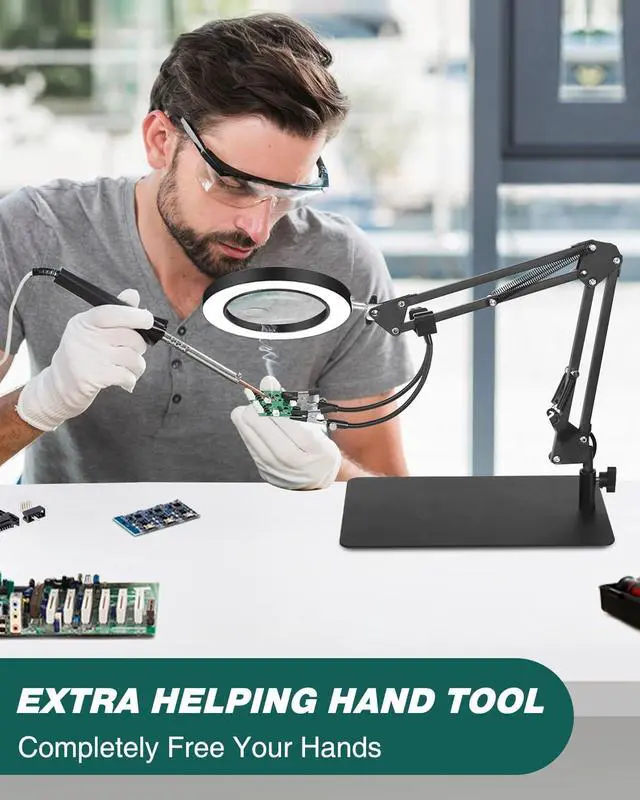 Versatile Hands-Fress Design Designed for flexibility, our desktop magnifying office lamp's stand and gooseneck allow for easy adjustment and precise positioning. Keep your hands-released and focused on your project, whether you're crafting, reading, or engaging in detailed work