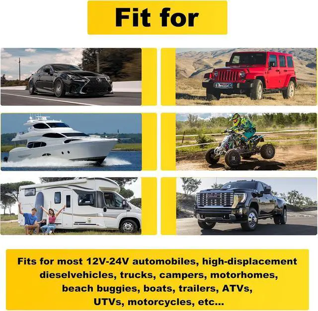 Wide range of uses: Suitable for most 12V cars, large displacement diesel vehicles, 12V trucks, campervans, motorhomes, ATVs, boats, trailers, ATVs, UTVs, motorcycles