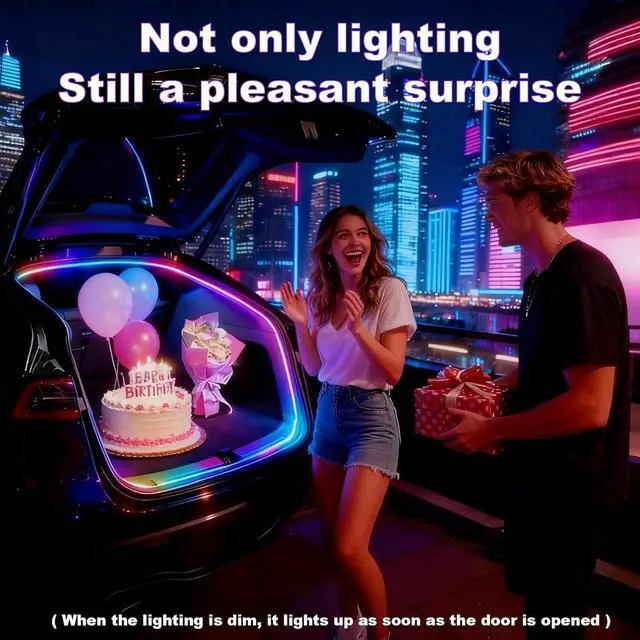 Intelligent Infrared Activation The LED light strip activates automatically when the trunk opens in low-light conditions, When the car trunk is closed, the light strips will automatically turn off, ensuring minimal power consumption. (Note: If the surrounding environment is well-lit, the light strip may remain off, which is expected)
