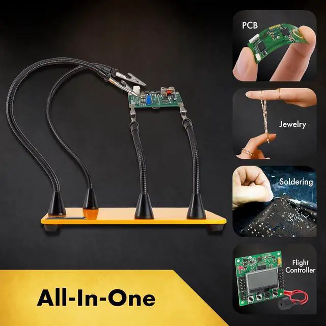 Innovative Flex Design: Free your hands! Workbench kit is the perfect work station assistant. Heat resistant arms allow you to steadily use a soldering iron for prolonged periods of time and can even be used when working on machinery or cars.