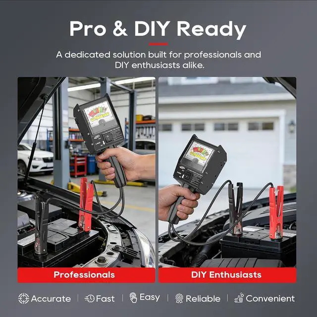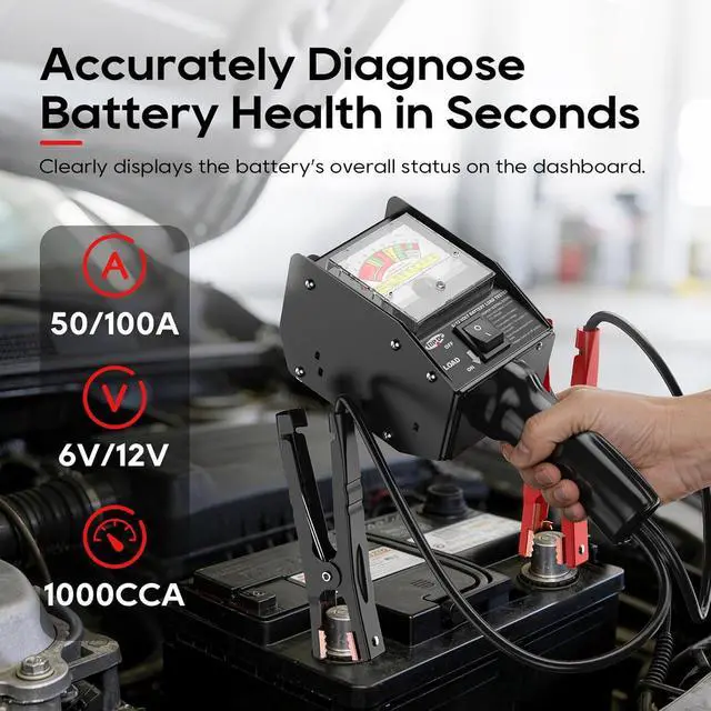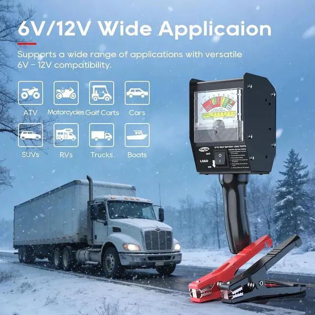 Broad Compatibility: Safely and effectively test a wide range of 6-volt and 12-volt lead-acid batteries, including standard flooded, AGM, and gel cell types commonly found in cars, trucks, SUVs, and boats.