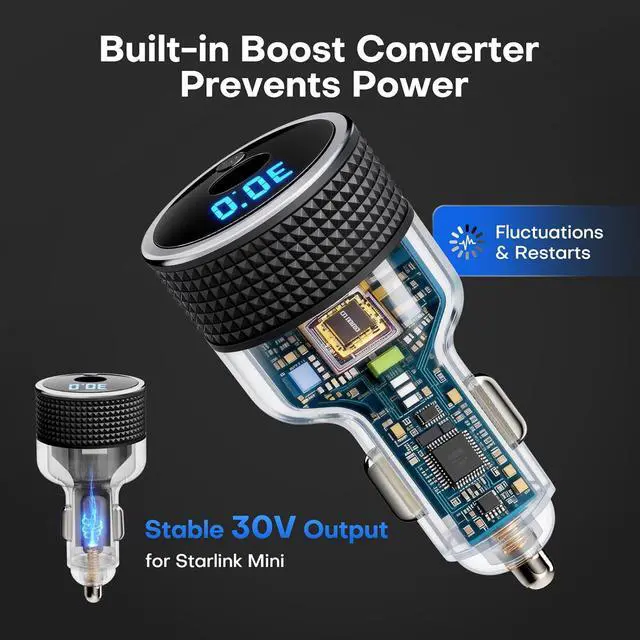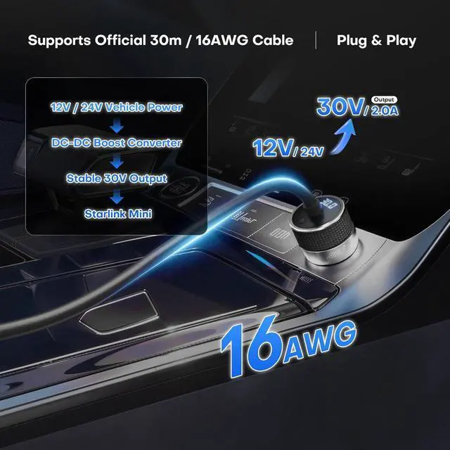 12V/24V to 30V Boost Converter Wide Vehicle CompatibilityCompatible with cars, RVs, trucks, vans, and boats, supporting both 12V and 24V systems. Perfect for road trips, overlanding, and mobile internet setups where stable power is critical.