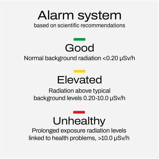 ALERT SYSTEM & PORTABILITY: Our radiation detector has an alarm system for high radiation levels (based on scientific recommendations), ensuring safety. The wireless and portable design of this nuclear radiation detector makes it ideal for any environment.