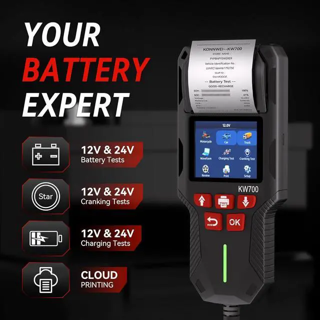 New Cloud Printing Result Sharing Upgraded KW700 streamlines record-keeping with QR code-enabled cloud printing. No app requiredafter battery testselect "ok" button, scan the QR code, and view results on your smartphone browser. Save results for seamless tracking, save paper, and easily share with clients or on social media. Pre-designed label paper lets users print test results directly, enabling efficient customer information management, ideal for professionals and service providers.