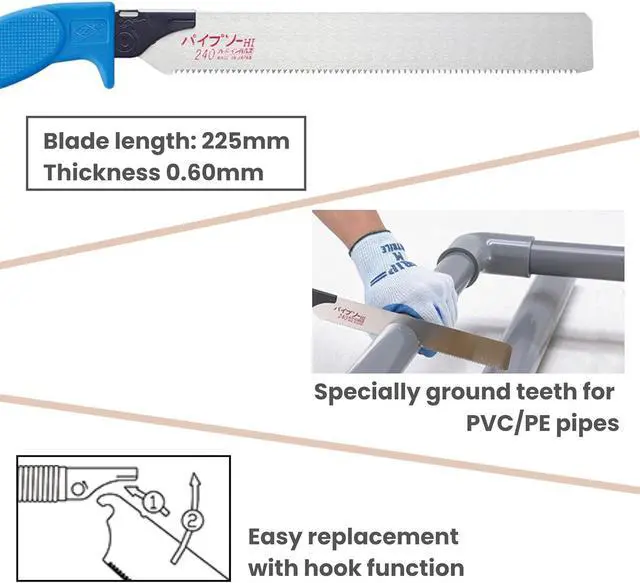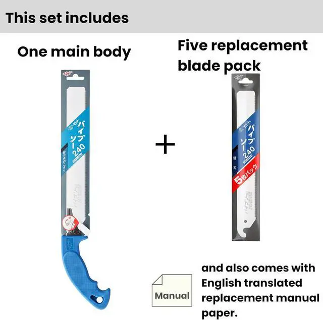 Pipe Saw 240 with 5 Replacement Blades Set, English Replacement Manual Included, Ideal for PVC Pipe, Japanese Hand Saw