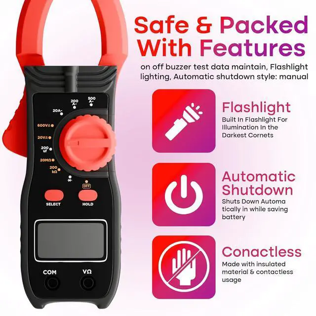 Built-In Safety & LED Flashlight: Enhanced safety with overload protection and non-contact voltage detection (NCV). The LED flashlight makes it convenient for working in dark environments.