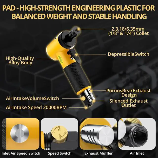 Versatile for Multiple UsesThis air die grinder kit works great for metal, auto, and woodworkingperfect for DIYers and mechanics