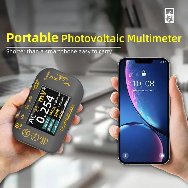 Portable: Mini PV Multimeter is lightweight and portable for on-site use. Comes with a stand for easy placement.