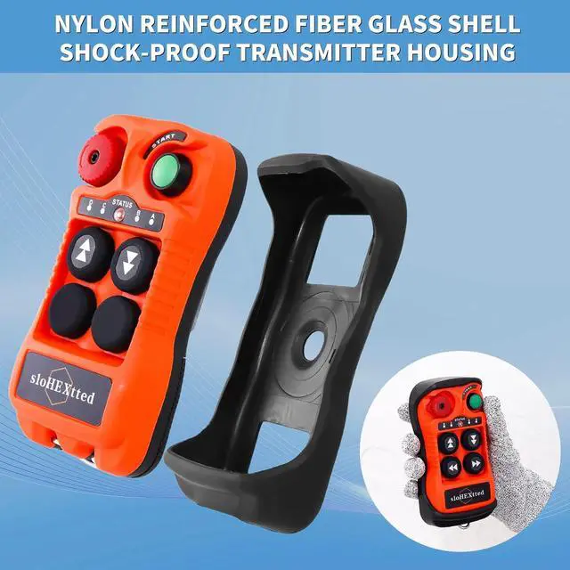 Radio Transmitter and Receiver with Reinforced Fiber Plastic Shell: The lightweight durable transmitter using ergonomic design, comfortable to hold in hand. The radio transmitter and receiver is made of PA65 reinforced flame retardant material, which has strong anti-pressure ability, waterproof, anti-corrosion and insulation. Rugged attachment to the receiver housing to prevent damage from strong impact and frequent drops