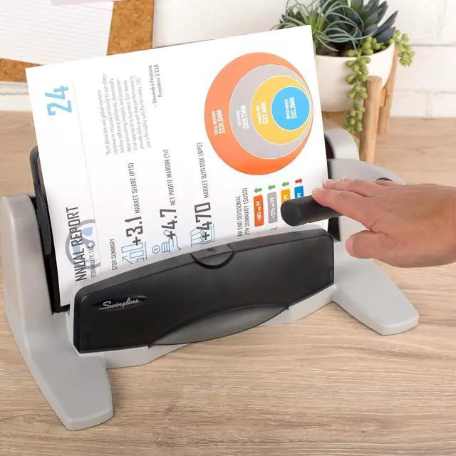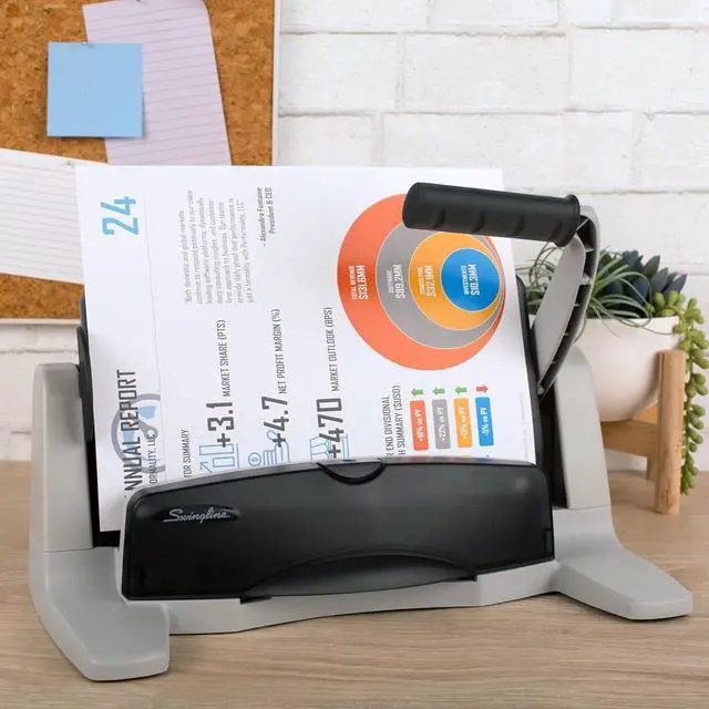 REDUCED EFFORT Lever requires 50% less manual force than traditional desktop punches.