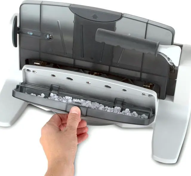 LESS MESS Cleanup of punched holes is simple and easy. A removable tray in the base catches punched paper scraps. Simply empty it into a waste basket and you're good to go.