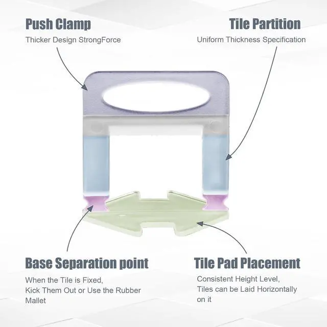 Great Tile Leveling SystemGreat tools for floor/wall setting. The system ensures flatness between tiles avoiding movements during the mortar setting. Fast & easy to install and remove