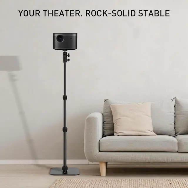 Quick Assembly: Easily rotate the small detachable ball head to mount it onto your projector, then snap it onto the projector floor stand with a clickno need to twist the projector or the stand. Adjust height and lock in place. Enjoy cinema-quality viewing in 2 minutes with this mini projector stand.