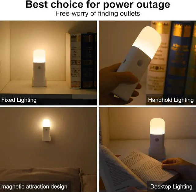 Motion Sensor Night Lights Indoor, Rechargeable Night Light Battery Powered, Portable Nightlight with Adjustable Brightness Activated Table Lamp for Kids, Adults(Warm Light, 4 Pack)