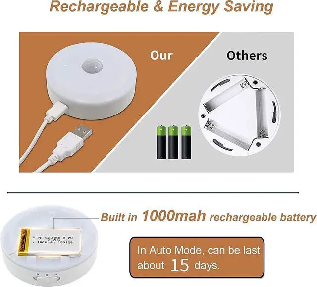 Easy Installation- Two Installation Methods. Built-in Magnetic and 3M tapeyou can easy intall it anywhere by simply peel the sticker off the 3M tape. The magnet design makes it easy to disassemble to charge, and can be directly attached to any ironwork. Perfect as an LED night light, bathroom light, cabinet lights, stairs lights or bookshelf lights.
