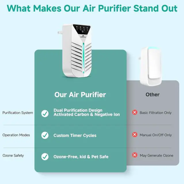 LOW-MAINTENANCE EVERYDAY AIR CARE: Designed for daily use, this negative ion air purifier helps reduce stale air and common odors without frequent filter changes. A simple option for bathrooms, workspaces, and pet-friendly areas