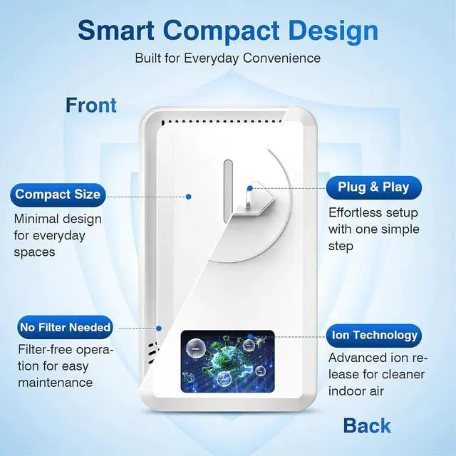 Compact Size for Flexible PlacementThe mini air freshener measures 3.94 × 2.56 × 2.36 in, allowing convenient use in bathrooms, kitchens, hotels, offices, warehouses, and other indoor spaces.
