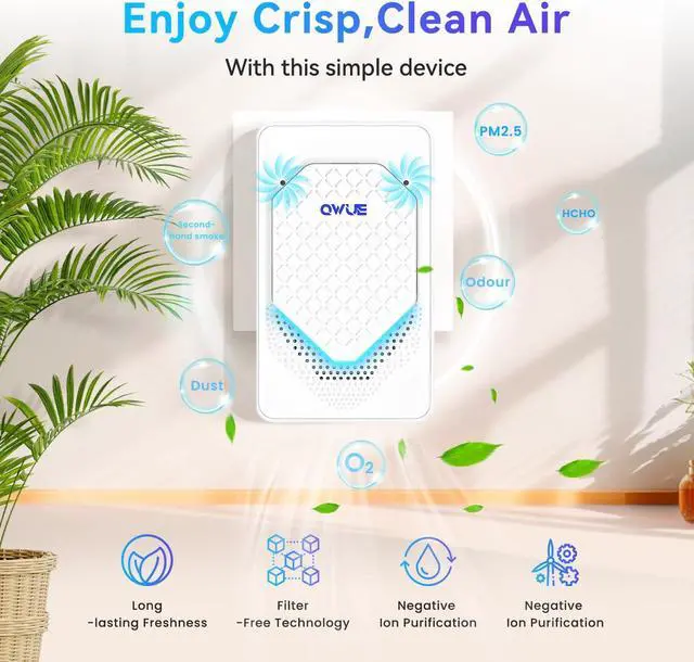 • Portable Air Cleaners Plug: Featuring a sleek, minimalist design, this discreet plug in purifier is small, lightweight, and space-saving. Simply plug it into any standard outlet for instant useideal for homes, offices, gyms, hotels, or cafes. Its compact size air purifiers delivering efficient air-cleaning performance ensuring fresh air is always within reach