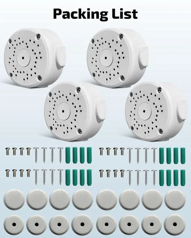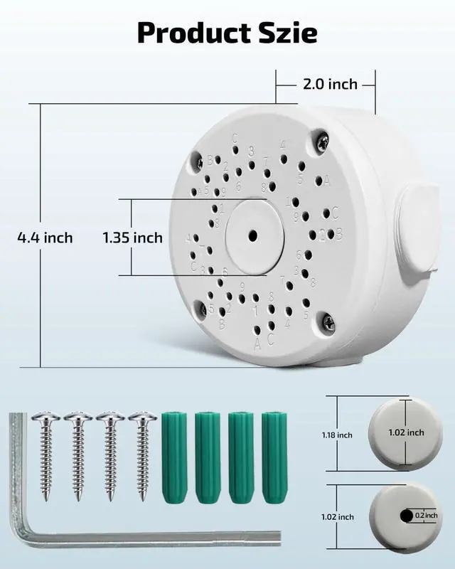 Size DetailsOur junction box for bullet cameras measures 4.09 x 4.09 x 1.97 inches, making it suitable for various installation needs. Please double-check that this size meets your specific requirements before making a purchase to ensure optimal performance.