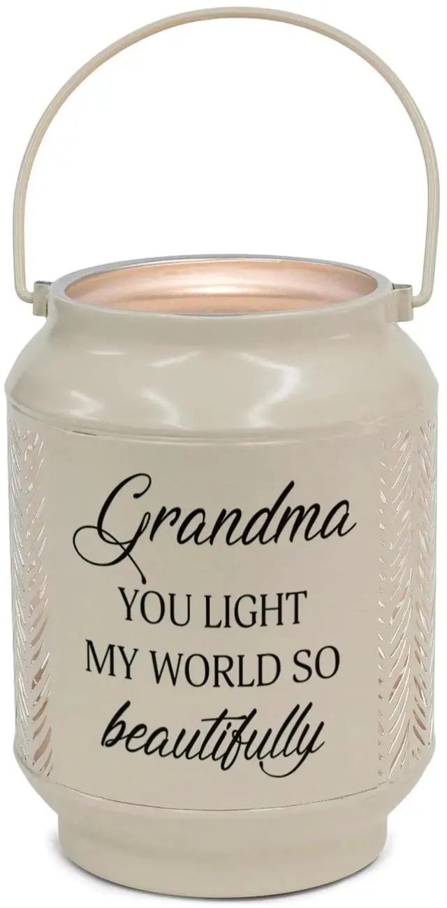 Inside This Distressed Ivory Lantern Is Coated With A Metallic Silver That Shines Brightly With A Heartfelt Message E27 Edison LED 25 Watt Lightbulb Included Needs 3 AAA Batteries Not Included Size 5x5x6 7 Sentiment Reads Grandma You Light My World So Beautifully