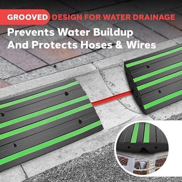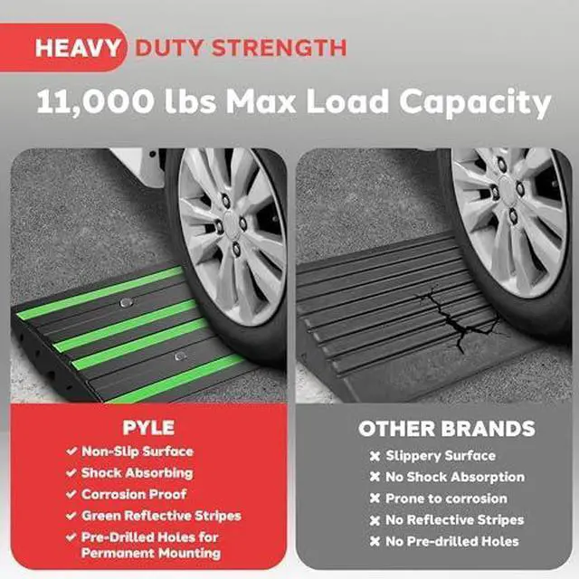 RUGGED & LONG-LASTING DESIGN This double curb ramp set is crafted from wear-resistant, non-slip rubber with a marine-grade waterproof construction. Built to withstand the elements, its perfect for vehicles like cars, trucks, RVs, and more.