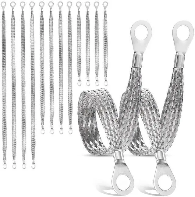 12 Pcs Universal Automotive Ground Straps, 10/15/20 Inch Silver Engine Ground Strap Kit with Ring Terminals Durable Strong Braided Copper Straps for Most Cars