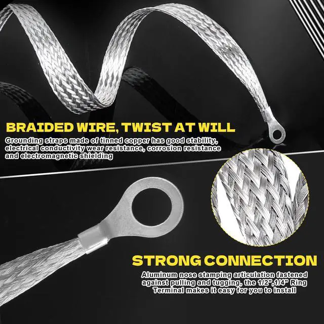 Braided Design These engine grounding straps feature a flat braided construction with a width of 1/2 inch, rated at 62 amps, secure connection, good softness, can be bent at large angles, thin wires are evenly woven, low heat generation, easy to use