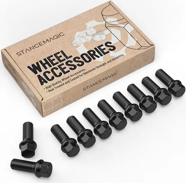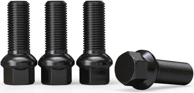 - [SPECIFICATIONS] Pack of 10 - Black Bolts | Thread Size: 14x1.5 | Seat Type: Ball Seat R12 | Shank Length: 37mm (ie thread length).