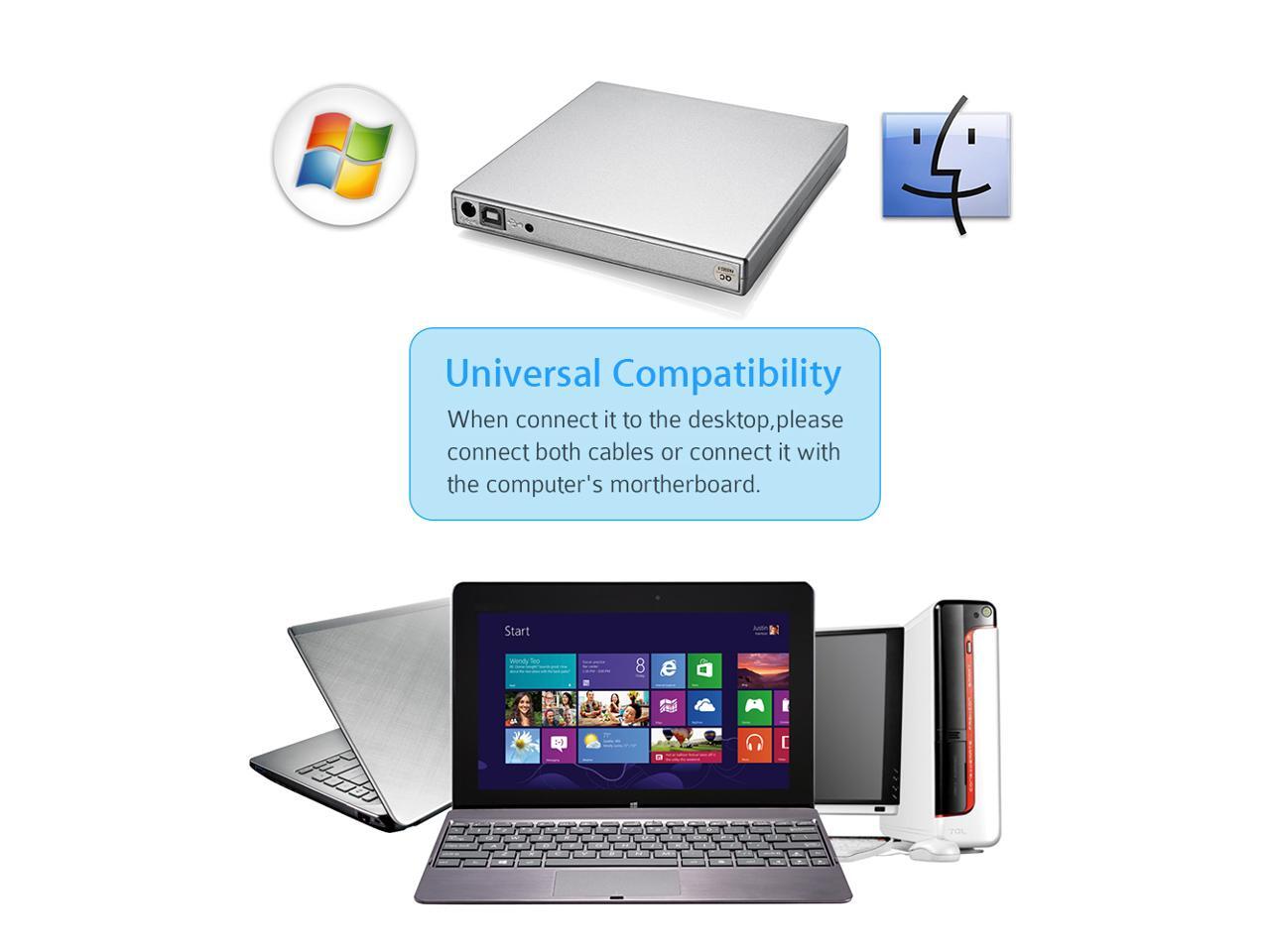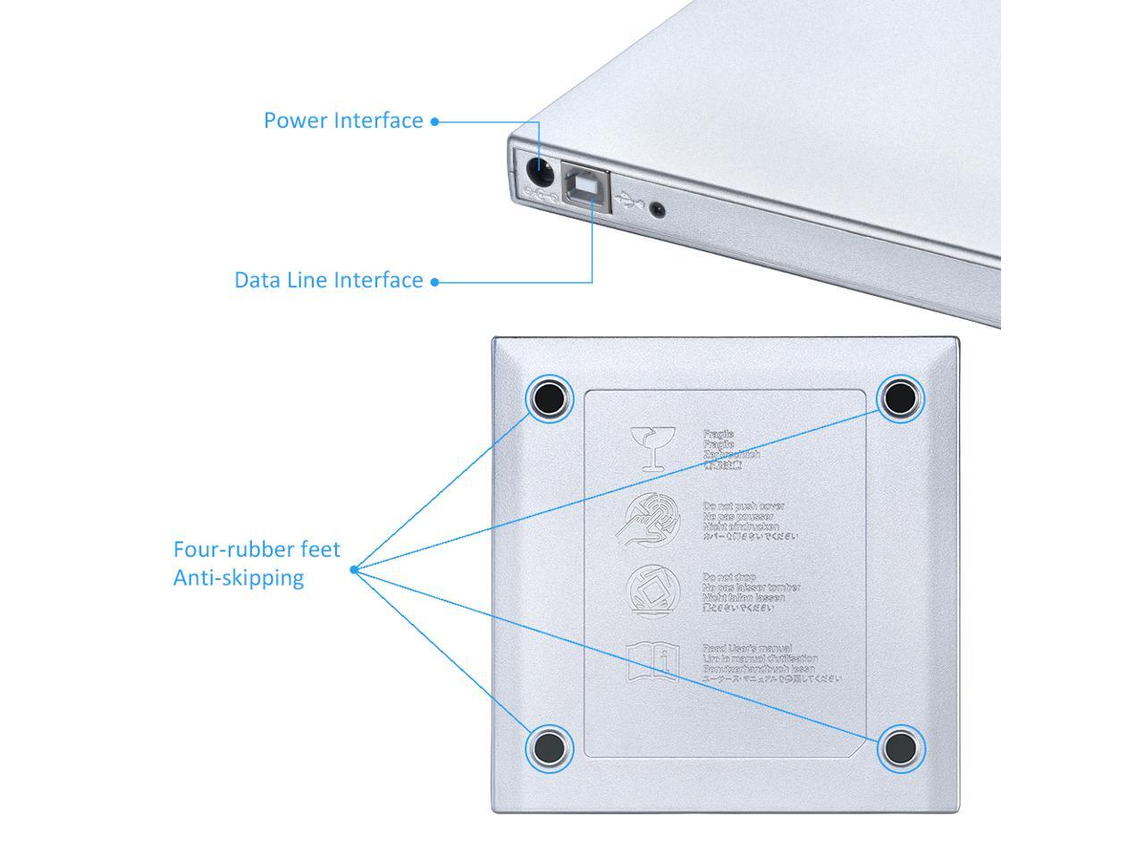 Patazon Mac OS Laptop Computer USB External CD-RW Burner DVD/CD Reader Player with Dual USB Cables Silver